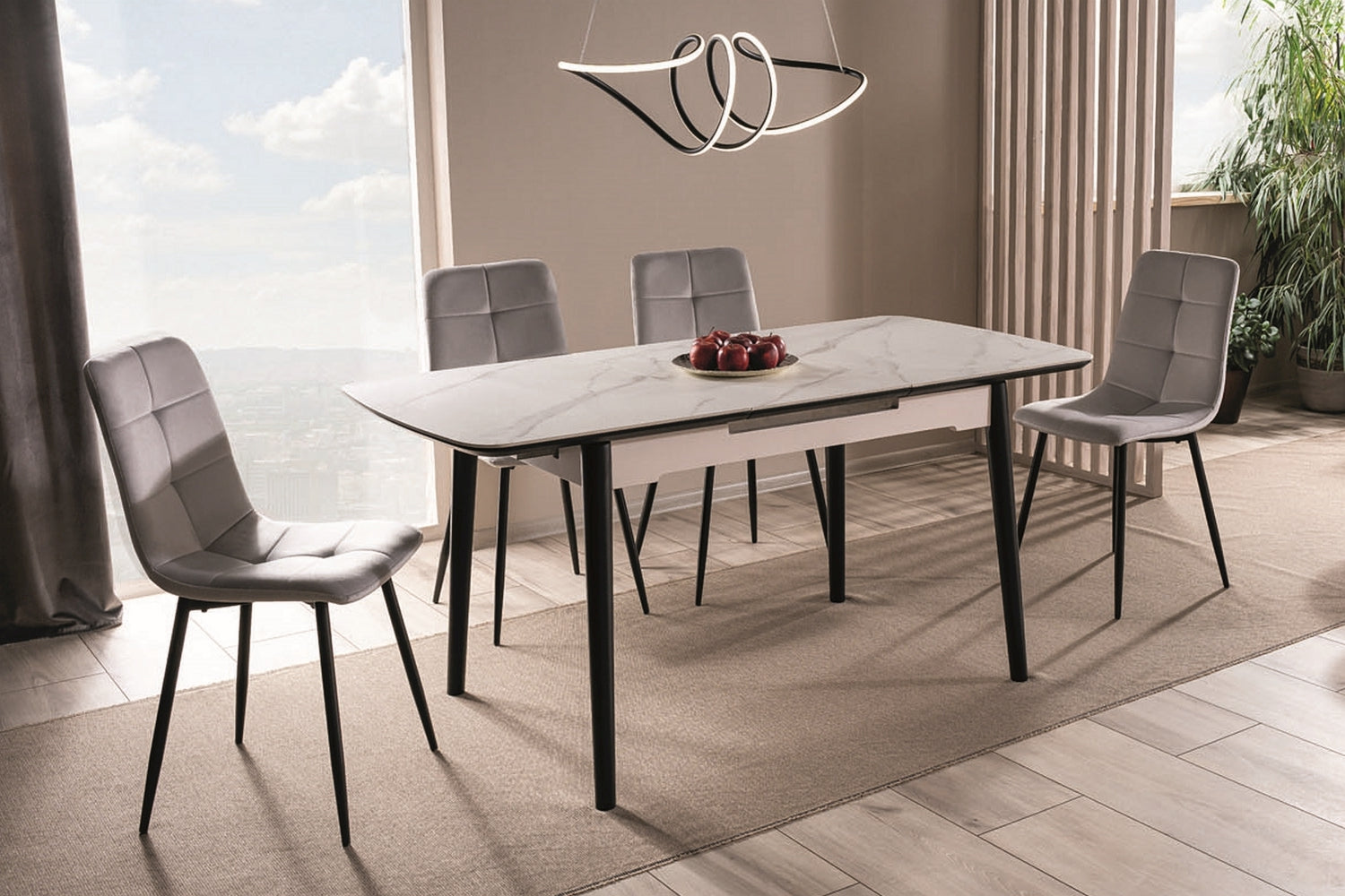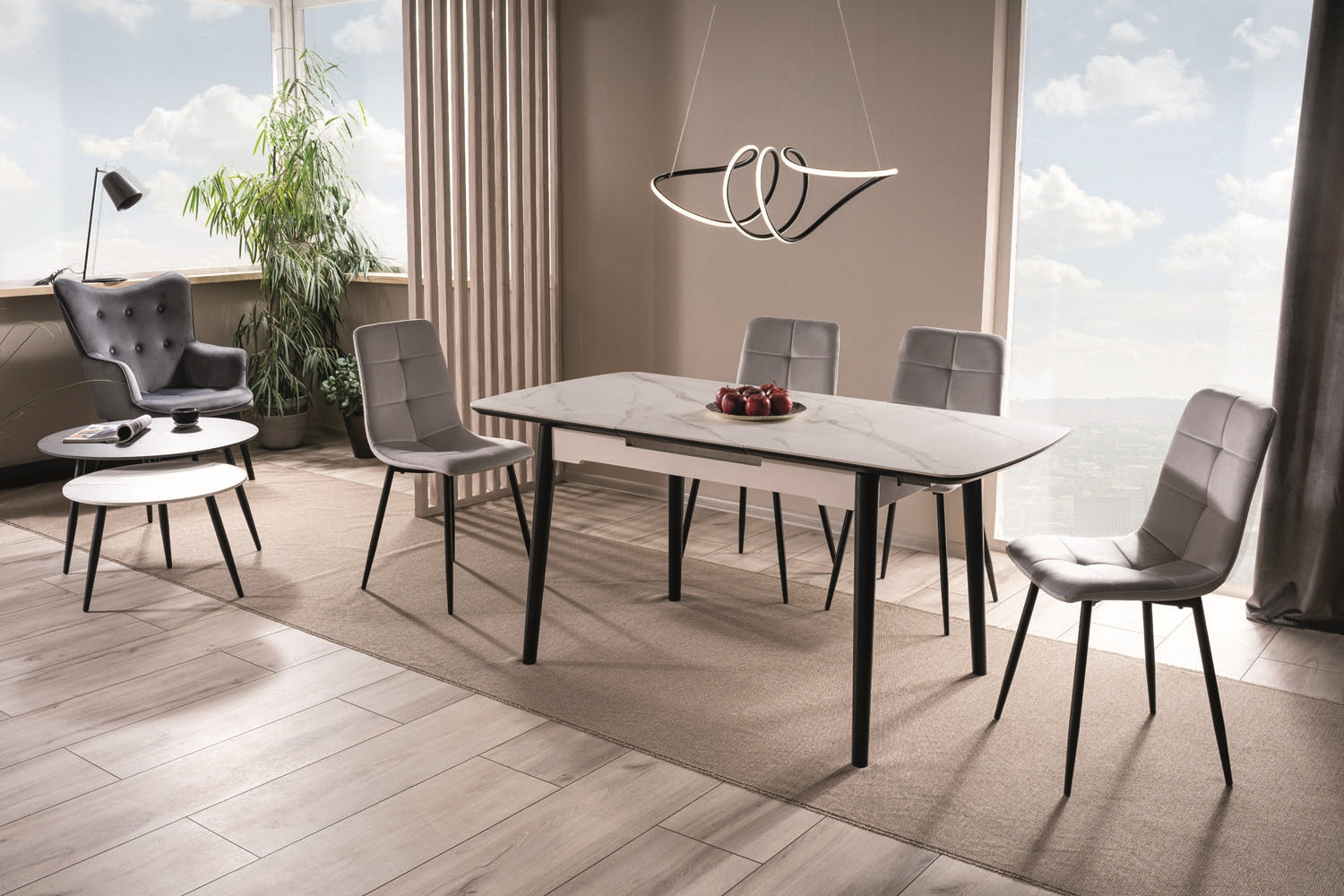 • Tischplatte: MDF + Keramik, Marmoreffekt