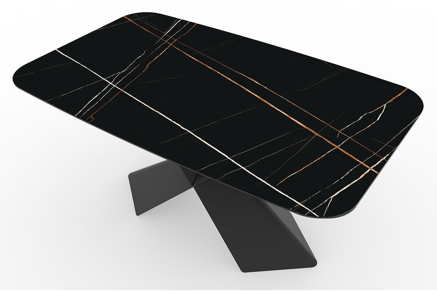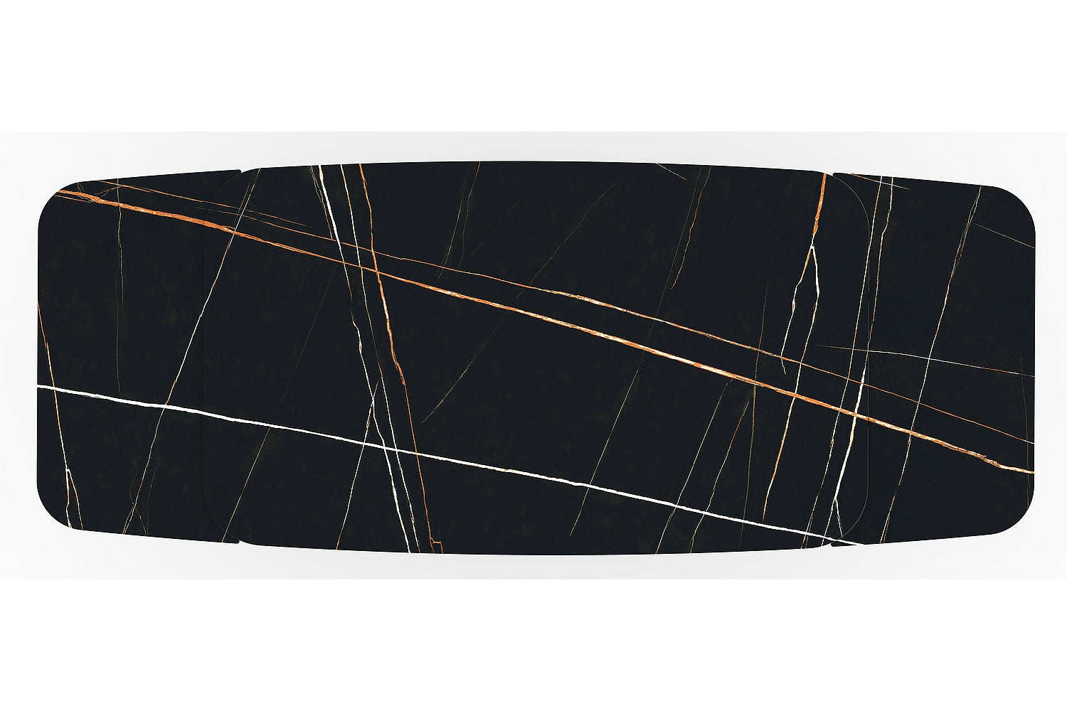 Tischplatte: Die Oberfläche besteht aus gehärtetem Glas kombiniert mit NOIR LAURENT-Keramik. Diese edle Materialwahl sorgt für eine luxuriöse Optik und ist zugleich robust sowie pflegeleicht.