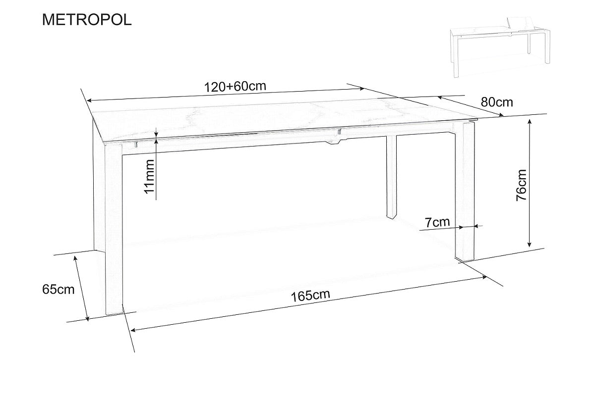 Breite: 120 cm, ausziehbar bis 180 cm x Höhe: 76 cm x Tiefe: 80 cm