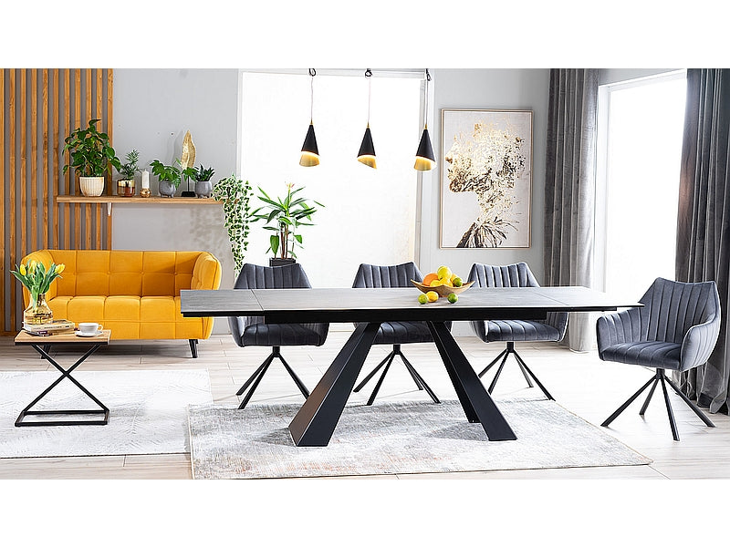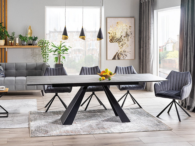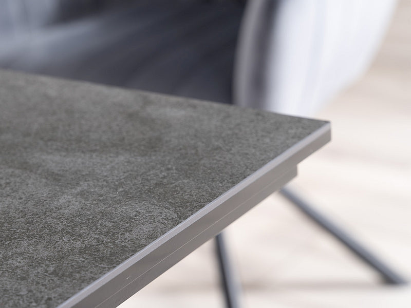 Farbe: Der Esstisch Salvadore mit italienischer Keramik 180 ist in einer Elegancen Kombination aus Grau und Mattschwarz gehalten, die ihm eine zeitlose und stilvolle Ausstrahlung verleiht.