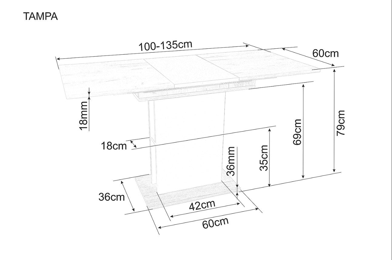 Größe: Mit einer Höhe von 79 cm, einer Breite von 100 cm und einer Tiefe von 60 cm (erweiterbar auf 135 cm) bietet der Esstisch Tampa genügend Platz für gemeinsame Mahlzeiten und gesellige Zusammenkünfte.