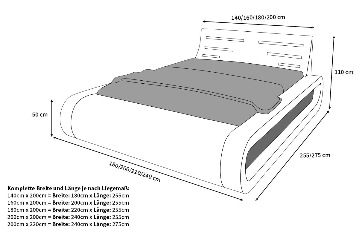 Komplettbett Sorano - Alle Größen mit LED-Beleuchtung