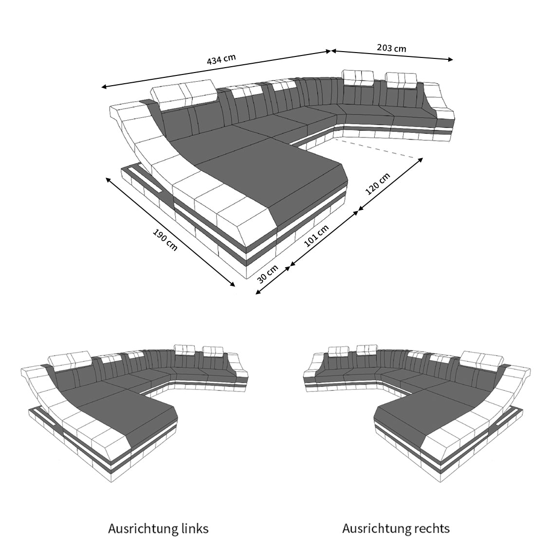 Mini Leder Wohnlandschaft Turino CL mit LED