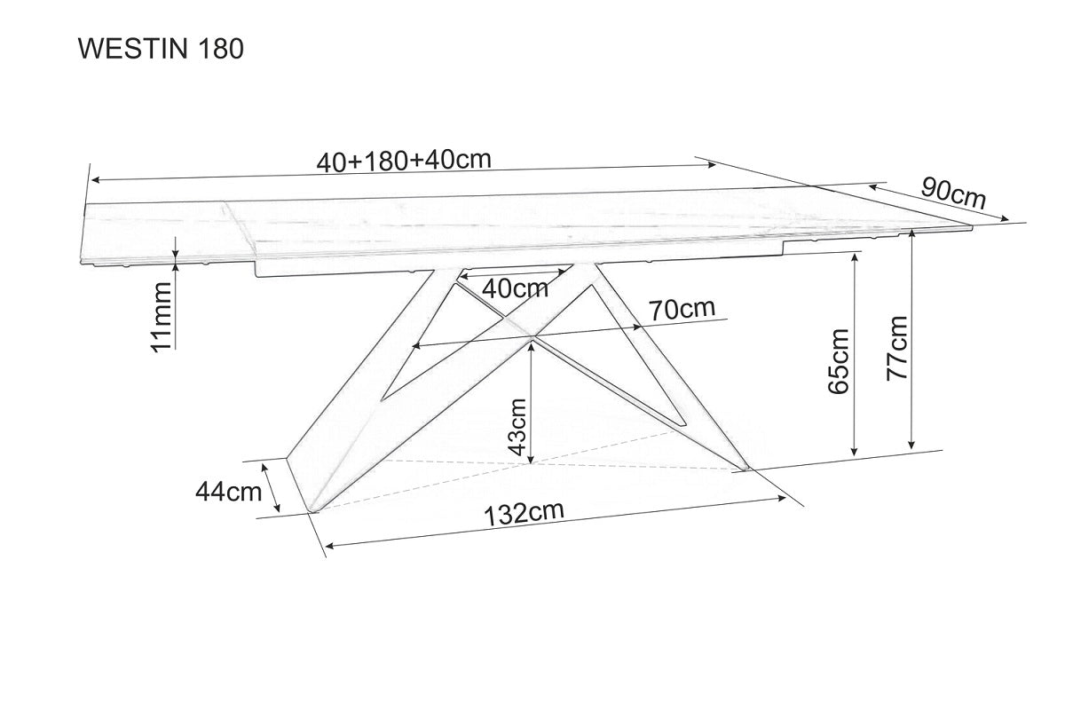 Dimensions : Avec une hauteur de 77 cm, une profondeur de 90 cm et une largeur de 180 cm (extensible jusqu'à 260 cm), la table à manger Westin III 180 offre suffisamment d'espace pour des repas prolongés et des occasions sociales.